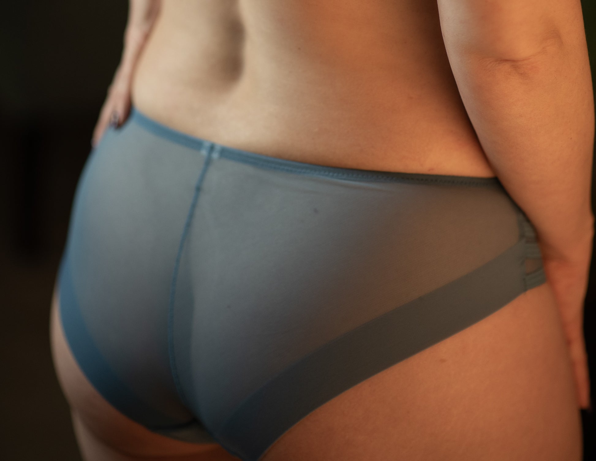 Siūlome jums išskirtines žemo liemens kelnaites, kurių priekinė dalis yra nepermatoma , o nugarinėje dalyje yra įdėtas subtilus tinklelis, neįsirėžiantis į sėdmenis. Priekinė dalis yra puošta juostelėm.